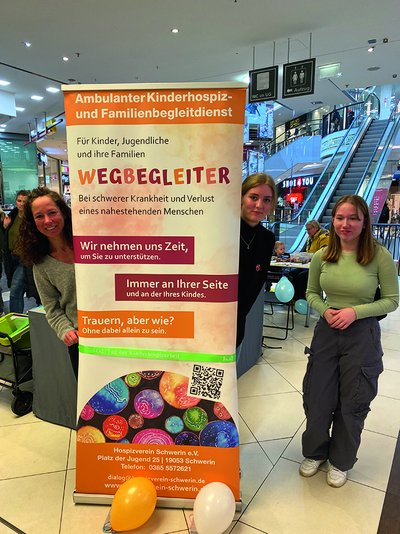 Momente der Freude schenken, Raum für Gespräche geben, Familien entlasten: Es sind viele Aufgaben, die der Hospiz-, Kinderhospiz- und Familienbegleitdienst des Hospizvereins Schwerin übernimmt. Am Tag der Kinderhospizarbeit stellten ehrenamtlich Engagierte diese Arbeit in der Marienplatz-Galerie vor – mit dem Ziel, das Thema Sterben und Tod junger Menschen zu enttabuisieren und in die Gesellschaft zu bringen.