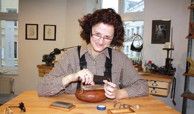 Doch da fand sich niemand. „Das ist jetzt deine Chance“, dachte die gebürtige Magdeburgerin. „Mach das endlich“, drängelten immer wieder ihre Freunde. Die Aufregung war groß. Doch erst nach sieben Jahren wagte sie den Schritt. Im Mai 2006 eröffnete sie in der Franz-Mehring-Straße ihre eigene Werkstatt, um das zu tun, was sie als junges Mädchen gelernt hatte. Ende der 1970-er Jahre besuchte sie die einzige Klasse in der DDR, in der Graveure ausgebildet wurden.