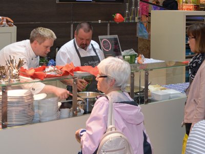 Täglich ab 11 Uhr kochen engagierte Schweriner Gastronomen für den guten Zweck. Die Gourmetfabrik, die Buscherie, das Amedia Plaza, das Schlosshotel Wendorf, die Mecklenburger Landpute und die Fleischerei Rupnow wollen die Besucher mit einem leckeren Drei-Gang-Menü kulinarisch verwöhnen. Als Partner sind außerdem der Rotary Club, der Inner Wheel Club Schwerin und das Schweriner Bündnis für Familie dabei. Das Fruchtkontor und die Mecklenburger Landpute sponsern gemeinsam mit dem Handelshof die Zutaten.