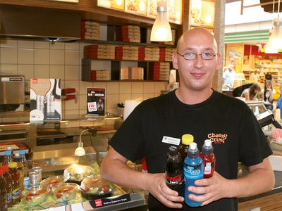 Darauf ist Pizza Hut gut eingestellt. Müller: „Neben den Erfrischungsgetränken wie Coca Cola und Sprite, die wir ohnehin im Angebot hatten, bieten wir jetzt weitere Kaltgetränke an.” So sind jetzt auch Sport-Drinks, Eistee, stilles Wasser oder kalter Latte macchiato zum Durstlöschen da. Die Palette der Warmgetränke wurde um Kakao, Moccachino und Tee erweitert. „Manchmal haben wir hier eine richtige Caféhaus- Atmosphäre”, freut sich Michael Müller. Bestehen bleibt auf jeden Fall, wofür Pizza Hut bekannt ist: Die leckere, individuell belegte Pizza, die in wenigen Minuten zubereitet ist. „Unserem Team”, so der Store-Chef, „liegt die Kundenzufriedenheit immer am Herzen.”