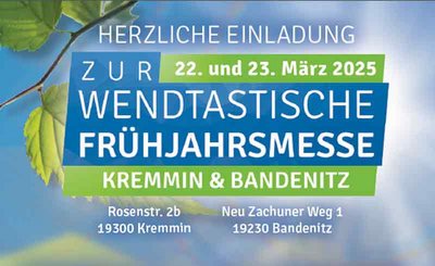 Freie Fahrt in den Frühling: Caravan-Wendt lädt am 22. und 23. März jeweils von 10 bis 17 Uhr zur Frühjahrsmesse in Kremmin und in Bandenitz ein. Freuen dürfen sich Besucher auf ein Frühlingsfest für die ganze Familie. Zur riesigen Auswahl von Reisemobilen und Wohnwagen kommen eine Technik-Show, Live-Musik und Unterhaltung sowie natürlich leckeres Essen.