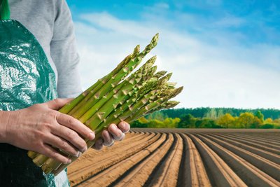 Grüner Spargel wird über der Erde geschnitten und wächst nicht wie die anderen beiden Varianten in Erdwällen. Die Pflanze bildet unter dem Einfluss der Sonne Chlorophyll, das für das frische Grün der Stangen verantwortlich ist.