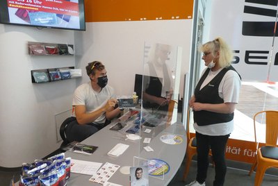 Der Ruderweltmeister und Schlagmann des Deutschlandachters Hannes Ocik war Anfang Mai zu Gast im e-laden in der Marienplatz-Galerie. Der Schweriner Spitzenathlet verkaufte dort eine Stunde lang Mund-Nasen-Masken. Ein Euro pro verkaufter Maske wurde anschließend an Hannes‘ Heimatverein, die Schweriner Rudergesellschaft, gespendet.
