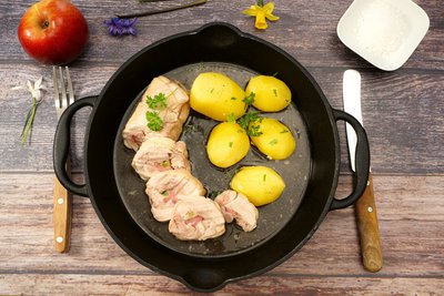 In der Küchensprache nennt man das Verfahren des Vakuumgarens „Sous Vide“, gesprochen „Sowit“. Dank der Wassertemperatur von unter 90 Grad Celsius bleibt das Fleisch bei diesem Verfahren schön zart und saftig. „Sous Vide“-Produkte sind in den Filialen der Mecklenburger Landpute, auf guten Wochenmärkten und unter landpute.de im Angebot.