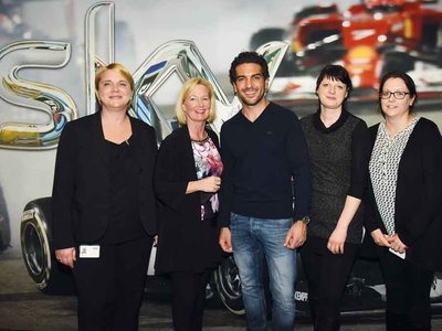 Sky Deutschland Service Center in Schwerin: Der beliebte Schauspieler Elyas M‘Barek besuchte am Donnerstag vergangener Woche Geschäftsführerin Daniela See und ihre Mitarbeiter.
