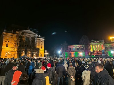 „Schwerin singt“: Dieser Einladung folgten am dritten Advent tausende Menschen. Der Alte Garten war voll und so erklangen zwischen Schloss, Museum und Theater die schönsten Weihnachtslieder. Die Beleuchtung auf dem Platz – zum Beispiel am wiedereröffneten Museum – trug zur perfekten Weihnachtsstimmung bei.