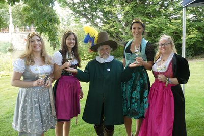 Das Petermännchen (hier dargestellt von Berthild Horn) mischte sich bei der Frankenwein-Präsentation im Burggarten sehr gern unter die fränkischen Weinprinzessinnen.