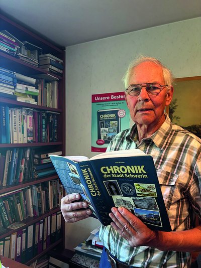 Noch immer liegen auf Udo Brinkers Schreibtisch Zeitungsausschnitte, die er für bemerkenswert hält. Zu dem Schwerin-Buch, das ihm einst sein Direktor schenkte, sind viele weitere Schwerin-Bücher dazugekommen. Rund um den neuen Welterbe-Status ist eine Menge erschienen, was sich jetzt ebenfalls bei ihm stapelt. Und dann ist da natürlich noch die Chronik der Stadt Schwerin von den Anfängen bis zur Gegenwart, das Buch, das er selbst mit unermüdlicher Laufarbeit und akribischer Recherche gefüllt hat. Sein Lebenswerk.
