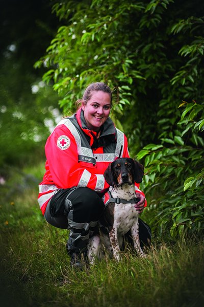 Emils Arbeit beginnt, wenn seine Hundeführerin ihm die Kenndecke anlegt. Vorausgegangen ist die Alarmierung durch die Leitstelle, in ganz MV können die Mensch-Hund-Teams zum Einsatz kommen. In den meisten Fällen suchen die Teams ältere Menschen, die sich aufgrund einer Demenz verlaufen haben. Aber auch Kinder, die nicht mehr nach Hause finden, suizidgefährdete Menschen und Pilzsammler, die im Wald die Orientierung verloren haben, brauchen die Hilfe der Retter. Emil und die anderen „Detektive“ sind Flächensuchhunde. Das bedeutet, sie laufen ohne Leine. Über eine Lampe und eine Glocke an der Kenndecke stehen die Hundeführer im Kontakt zu ihren Tieren. Aufgabe des Menschen ist es, das Tier so zu lenken, dass es im Gelände optimal Witterung aufnehmen kann. Emil kommt zugute, dass mit dem Pointer-Erbteil ein Jagdhund in ihm steckt. Er hat eine hervorragende Nase, ist klein genug, um sich durchs Unterholz zu arbeiten und groß genug, um schnell und ausdauernd zu sein. „Emil ist ein richtiger Dorfhund“, sagt Friedrun, die genau das Unkomplizierte an ihrem Begleiter schätzt. „Zu Hunden lässt sich eine emotionale Beziehung aufbauen, sie sind Partner, mit denen man zusammen durch Höhen und Tiefen geht.“