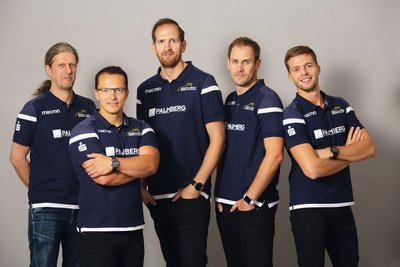 Der Trainerstab beim SSC Palmberg Schwerin bleibt zusammen, nachdem Chefcoach Felix Koslowski (2. v. r.) und Co-Trainer Martin Frydnes (M.) ihre Verträge verlängert haben. Der zweite Co-Trainer Paul Sens (r.) sowie Scout Olaf Garbe (l.) und Athletiktrainer Michael Döring (2. v. l.) hatten noch laufende Verträge. Dafür gibt es beim SSC Palmberg seit 1. Juli einen neuen Geschäftsführer: Christian Hüneburg, der vorher Finanzvorstand beim FC Hansa Rostock war. Der gebürtige Schweriner wird vor allem für Verwaltung, Finanzen und Sponsoring zuständig sein.