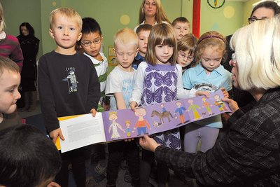 Gespannt lauschten die Vorschulkinder aus der integrativen Kita „Haus Sonnenschein” der Kita gGmbH der Oberbürgermeisterin Angelika Gramkow. Sie las das skandinavische Märchen vom faulen Lars, in dem es um einen sehr trägen Jungen geht, der dank eines Wunders die Prinzessin zur Frau bekam.