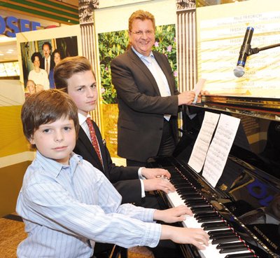 Die Liebe zur Musik hat auch der junge Niklot im Blut. Der 15-Jährige spielt selbst Klavier und gab zur Ausstellungseröffnung ein Ständchen - zusammen mit Danilo Volpyansky. Der Zehnjährige gehört am Konservatorium zu den besonders talentierten Schülern und erhält den diesjährigen Förderpreis. Von dem Geld wird ein Klavier angeschafft, das Danilo zum Üben zur Verfügung stehen wird. Die Summe war mit der diesjährigen Spargelschäl-Aktion im Center zusammengetragen worden. Künftig sollen mit dem Preis regelmäßig junge Musiker unterstützt werden. Das ist ganz im Sinne von Niklot: Er ist jetzt Ehrenmitglied im Förderverein des Konservatoriums.