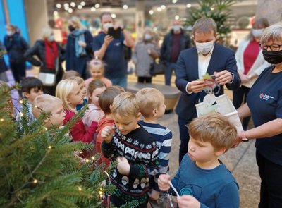 Vierhundert Wünsche können Schweriner in diesem Jahr im Rahmen der Wunschbaumaktion des DRK-Kreisverbandes Schwerin erfüllen. Den Baum im Schlosspark-Center hat Oberbürgermeister Rico Badenschier zusammen mit Kindern der Kita „Villa Traumland“ kurz vor Beginn der Adventszeit bereits geschmückt.