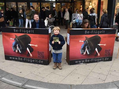 Da ist Musike drin: Auf dem Marienplatz, vor dem Eingang der Marienplatz-Galerie, hauen hier zwei Musiker in die Tasten und unterhalten die Passanten mit fröhlichen Klängen. „Be-Flügelt“ nennen die beiden Pianisten Andreas Güstel und Julian Eilenberger ihr Programm – eine Mischung aus flotten und ruhigen Klängen.