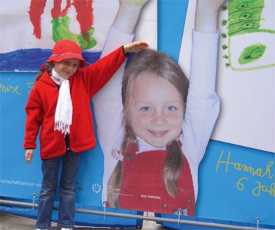 Am Rande der Großbaustelle am Marienplatz wird es bunt: Auch der Bauzaun um das Gelände der künftigen Marienplatzgalerie verwandelte sich pünktlich zur BUGA in eine Galerie. Auf großen Planen sind Zeichnungen und Collagen von Kindern der Schweriner Niels-Stensen-Schule und des Kindergartens in Vietlübbe bei Gadebusch zu sehen. Weitere Planen zeigen Fotos - natürlich aus Schwerin, wieder andere haben Gucklöcher.