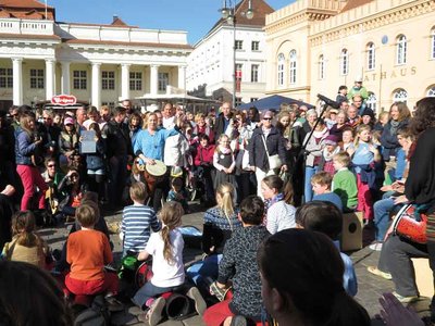 Ein fröhliches buntes Fest feierten die Schweriner zusammen mit Neubürgern unserer Stadt am 30. April: Auf dem Markt fand wieder der traditionelle „Tanz der Kulturen“ statt. Das musikalische Programm reichte dabei von Chormusik über Rap und Swing bis zum Reggae. Unterstützt wurde die Veranstaltung unter anderem durch die Initiative „Wir. Erfolg braucht Vielfalt“.