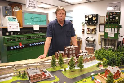 Wenn sich so viel im Leben eines Mannes um die Eisenbahn dreht, möchte man meinen, in seiner Freizeit wird er sich ganz bestimmt einem anderen Thema widmen. Macht er auch, denn seit 1990 sitzt Frank Fischer für die SPD im Schweriner Stadtparlament, arbeitet dort aktiv in zwei Ausschüssen mit. Doch seit 2005 ist er darüber hinaus auch Vorsitzender des Vereins Mecklenburgische Eisenbahnfreunde Schwerin e.V. und das ist wieder ganz dicht an der Berufsarbeit dran. Für dieses Ehrenamt stellte sich Frank Fischer in einer für den Verein schwierigen Zeit zur Verfügung. Die gut 80 Mitglieder mit unterschiedlichen Interessen hatten sich auseinandergelebt, statt kooperativen Zusammenwirkens überwog Streit. In dieser Situation stellte sich der Schweriner zur Wahl. Er ist kein Spezialist für besondere Technik, hatte aber eine Vision: Jedes Mitglied sollte sich im Verein wieder aufgehoben fühlen. Die stattliche Sammlung an historischer Technik mit immerhin fünf Dampfloks, neun Dieselloks, einem Triebwagen mit Beiwagen, einer Dampfschneeschleuder, elf historischen Personenwagen, Stellwerken, Signalen und weiteren wertvollen Zeugnissen aus allen Bereichen der Eisenbahngeschichte sollten über das Gelände hinter dem Schweriner Bahnhofsgelände hinaus ausstrahlen, ein selbständiges Museum entstehen, Events immer wieder Neugierige anziehen. Heute kann Frank Fischer auf ein paar Jahre erfolgreichen Wirkens zurück schauen. Das ausschließlich in ehrenamtlicher Tätigkeit betreute und ohne jegliche Zuschüsse funktionierende Museum bietet neben der Öffnung am letzten Samstag jedes Monats mehrmals im Jahr themengebundene Aktionstage und Veranstaltungen an. Schulklassen und Projektgruppen können sich zu Führungen anmelden und Kinder hier ihren Geburtstag feiern. Für Betriebsfeiern, Produktpräsentationen oder Firmentagungen bietet die alte Lokwerkstatt ein nicht alltägliches Ambiente. Die hier untergebrachten historischen Fahrzeuge werden für solche Gelegenheiten vor die Tore gefahren, in der 2000 Quadratmeter großen Halle ist dann Platz für 300 Gäste, Bühne und Cateringservice. Nicht vergessen werden darf in der Aufzählung die Dampflok 91 134 und die zehn betriebsfähigen historischen Personenwagen – der Älteste aus dem Jahr 1872, der jüngste aus dem Jahr 1930 –, mit denen man zu besonderen Gelegenheiten Eisenbahnatmosphäre wie vor 100 Jahren erleben kann. Gerade waren Lokführer Jürgen Stettin aus Güstrow und Heizer Thomas Meter aus Parchim zum Bahnhofsfest zwischen Putbus und Bergen auf der Insel Rügen unterwegs. Doch auch zu anderen Gelegenheiten, wie dem Hafenfest in Wismar, wird die historische Lok unter Dampf gesetzt. Nächster Höhepunkt im Vereinsleben ist in ein paar Tagen übrigens der 30. Juni. Von 10 bis 18 Uhr ist dann nicht nur das Mecklenburgische Eisenbahn- und Technikmuseum gleich hinter dem Schweriner Bahnhof geöffnet. Der Modellbahnclub Güs-trow e.V. stellt auch seine Sammlung von Gartenbahnen vor.