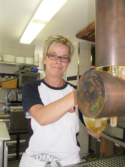 Ein Kiosk an der Rückseite des Restaurants versorgt die Gäste mit Getränken und Essen. Es sind Gerichte wie Kartoffelsalat, Kartoffelstrudel und Ofenkartoffeln angedacht. „Der Räucherofen im Imbiss macht es uns möglich, dass wir hier auch Selbstgeräuchertes im Biergarten anbieten können“, sagt Jiskra.