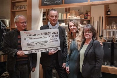 Das in Schwerin allseits bekannte Spendenprojekt „Jens lädt ein!“ war auch im Jahr 2022 wieder ein voller Erfolg. Bei dem jährlichen Höhepunkt, der „Thalia Nacht“, wurde gemeinsam gefeiert und vor allem gespendet, um gemeinnützige Projekte zu unterstützen. So konnte Initiator Jens Kulbatzki nun die Spenden in Höhe von insgesamt 50.000 Euro an den Hospizverein Schwerin und die Lebensmittelausgabe der Schweriner Petrusgemeinde überreichen.