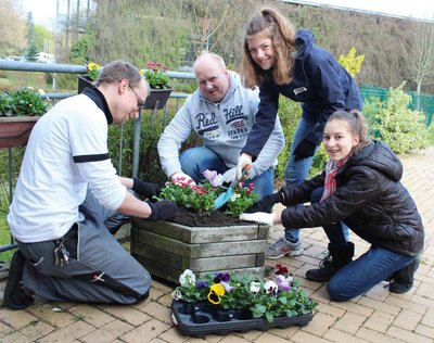 Sylke Gräber, Hauswirtschaftsleiterin des Wohnparks, freut sich: „Dieses Mal maßen sich insgesamt 35 Erwachsene und Schüler, ein neuer Rekord. Gemeinsam, auch teils mit Hilfe von Bewohnerinnen, haben sie fleißig gebuddelt, gepflanzt und gebastelt. So entstanden tolle Frühlings- und Osterdekorationen für die Innen- und Außenbereiche.“