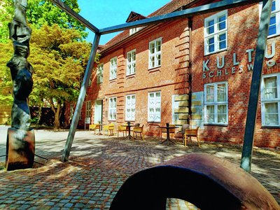 Das Kulturforum Schleswig-Holstein-Haus empfängt seine Besucher zukünftig mit einem neu gestalteten Vorplatz. Nach 25 Jahren Nutzungszeit wurde der Bereich zugunsten einer modernen Gestaltung und eines höheren Komforts umgebaut. Neue Daten- und Elektroleitungen wurden verlegt, der Regenabfluss optimiert und der Eingangsbereich des Hauses mithilfe ebener Natursteinplatten barrierefrei gestaltet. Der Einbau eines Windfangs ermöglicht eine offene Tür und rundet diese Maßnahme ab. Für eine ansprechende Atmosphäre wurden die Blumenbeete erweitert und bienenfreundlich bepflanzt. Sitzmöglichkeiten vor dem Haus laden die Besucher zum Verweilen ein. „Mit dem Einzug des Sommers nimmt nun auf dem neugestalteten Platz auch das kleine Selbstbedienungscafé im Foyer den Service für die Besucherinnen und Besucher auf“, berichtet die Leiterin des Hauses, Dörte Ahrens. Das Café musste nach seiner Entstehung aufgrund der Pandemie zunächst geschlossen bleiben. Nun werden dort leckere Getränke für eine gemütliche Pause angeboten.