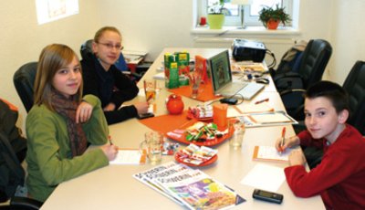 Bei SCHWERIN LIVE war alles vorbereitet. In einer kurzen Redaktionssitzung bereiteten wir uns wie die Profi s auf die kommenden Termine vor. Dann stand unser erstes Interview an. Im Stadthaus wurde Oberbürgermeisterin Angelika Gramkow auf Herz und Nieren geprüft (siehe Seite 5 in dieser Zeitung). Beim anschließenden Mittagessen im Restaurant Friedrich`s dachten wir uns die Fragen für den Theaterleiter des Capitol aus. Dirk Mattenklott erzählte uns zum Beispiel, welcher Streifen der erfolgreichste Film 2010 war (Seite 5) und öffnete für uns einen Vorführraum. Wieder in der Redaktion, mussten wir unsere Eindrücke vom Notizblock und die Fotos von der Kamera in das Zeitungslayout auf dem Bildschirm transferieren. Das Ergebnis - es ist zu ahnen - fi ndet man auf Seite 5.
