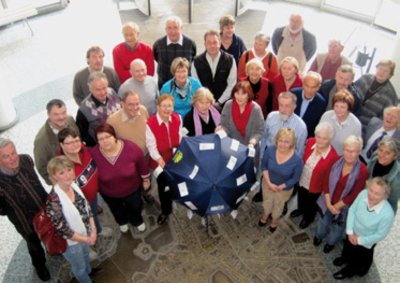 Einen Regenschirm geschmückt mit Geldscheinen übergab der Verein Schweriner Gästeführer während einer Veranstaltung im Stadthaus zum Festumzug symbolisch an die Projektleiterin der 850-Jahrfeier, Sabine Steinbart .