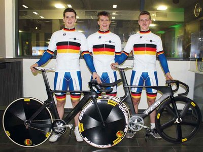 Der Lions Club Ludwigslust spendierte kürzlich drei jungen erfolgreichen Bahnradsportlern vom Schweriner SC Renn-Trikots und -Anzüge: Die Deutschen Meister Nick Rother, Tilman Ribbeck und Carl Hinze (v.?l.) können nun noch besser ausgestattet weiter auf Medaillenjagd gehen. Axel Schöne, derzeit Präsident des Lions Clubs Ludwigslust, freut sich: „Die Jungs haben die Anzüge, die sie brauchen, und wir können uns mal öffentlich präsentieren.“