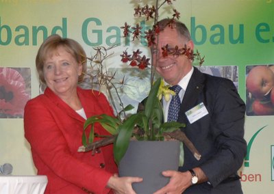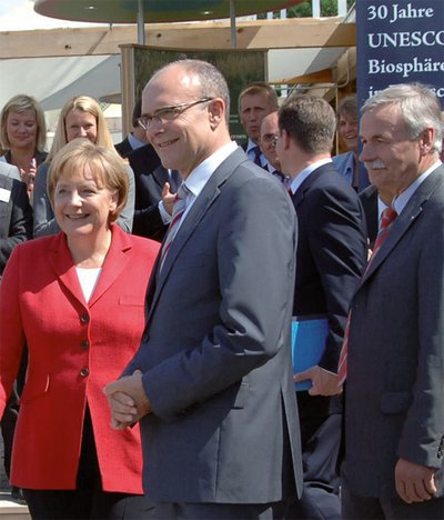 Staunen bei den Besuchern der Buga am 15. Juli: Das ist doch ... Ja, die Bundeskanzlerin höchstpersönlich stattete der Gartenschau einen Besuch ab. Auf Einladung des Zentralverbandes Gartenbau und als Schirmherrin des Jahres der UNESCO Biosphärenreservate verschaffte sich Dr. Angela Merkel einen Überblick des gärtnerischen und landschaftsgestalterischen Könnens der Buga-Macher.