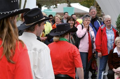 Diese Mischung hatte die Buga noch nicht gesehen: Am 7. Oktober, kurz vor Toresschluss des grünen Großereignisses, konnte man noch einmal Lebensfreude und Gartenkunst pur erleben. In der Blumenhalle im Küchengarten waren die Lewitz-Werkstätten aus Parchim zu Gast. Mit Linedancern und Kürbissuppe heizten die Mitarbeiter des gemeinnützigen Unternehmens den Besuchern noch einmal so richtig ein.