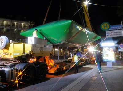Nun sind sie weg, die Kunstkissen, die bis vor Kurzem noch den Dreescher Markt mehr oder weniger schmückten. Der Abbau am späten Abend des 27. November gestaltete sich allerdings etwas schwieriger als erwartet. Die Handwerker mussten sogar ins Kissen-Innere, um sie vom Boden lösen zu können. Neuer Besitzer der Kunstwerke ist der Wittenfördener Unternehmer Peter Eckel, der sie nun auf sein privates Grundstück gelegt hat.
