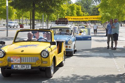 Schaulustige und Technik-Fans gleichermaßen erfreuten sich am letzten Juli-Wochenende an der Ausfahrt im Rahmen des 2. Schweriner Oldtimertreffens. Auf dem Bertha-Klingberg-Platz konnte man all die alten Schmuckstücke besichtigen, bevor sie in einem eindrucksvollen Corso durch die Innenstadt fuhren.