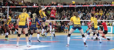 Zuletzt ging es für die Volleyball-Damen des Schweriner SC in der Bundesliga wieder aufwärts. Der Niederlage gegen den Dresdner SC (Foto oben) folgten Siege zu Hause gegen Köpenick, auswärts bei den VolleyStars Thüringen und dann wieder daheim gegen VT Aurubis Hamburg. Am kommenden Dienstag, 20. Januar, ab 19 Uhr wird‘s dann wieder international: Zum nächsten Challenge-Cup-Spiel kommt Asterix Kieldrecht in die Schweriner Arena. Trainer Felix Koslowski und seine Mädels sind gut vorbereitet.