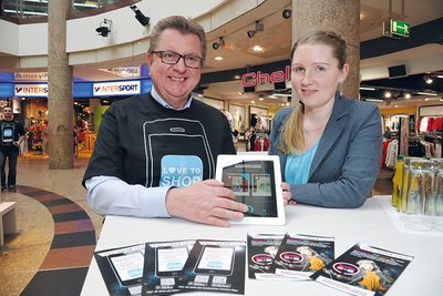 Das Schlosspark-Center ist über seine App „Love to Shop“ jetzt immer „on“. Kunden mit Smartphone (Apple und Android-Geräte) werden mittels dieser App jederzeit über Angebote, Gewinnspiele, Center-News und -Events informiert. Der Clou dabei: die exklusiven Angebote der einzelnen Geschäfte nur für App-Nutzer. Centermanager Klaus Banner (Foto rechts und unten links) findet die App klasse. Viele Kunden ließen sich gleich am Starttag über die Funktionen der App informieren.