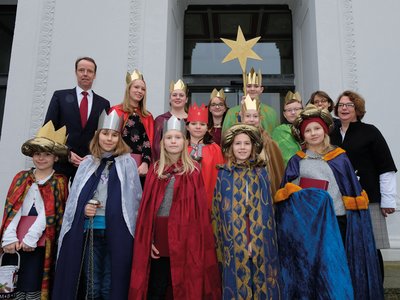 Anfang Januar waren rund 1.000 kleine Sternsinger im Lande unterwegs. Eine Gruppe wurde auch wieder in der Staatskanzlei empfangen. Bei der traditionellen Spendenaktion sammeln die als Heilige drei Könige verkleideten Mädchen und Jungen Geld für Kinder in Not. Dieses Mal lautete das Motto: „Gemeinsam gegen Kinderarbeit – in Indien und weltweit“.