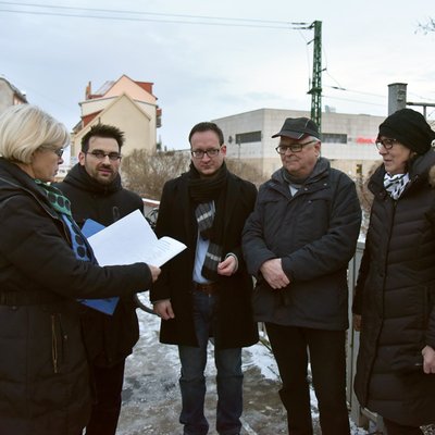 Insgesamt 1.300 Unterschriften kamen zusammen. Die Listen überreichte Bubnick zusammen mit dem Ortsbeiratsvorsitzenden Steffen Wehner (2. v. l.) sowie Wilhelm und Petra Soltau, denen das anliegende Grundstück gehört, an die Oberbürgermeisterin Angelika Gramkow (l.).