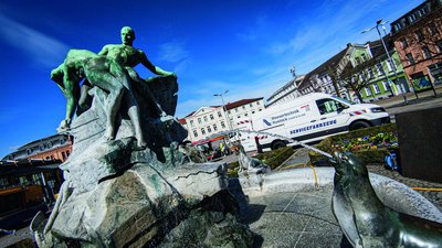 Bei bestem Wetter wurden kürzlich die Schweriner Brunnen wieder in Gang gesetzt. Damit alles glatt geht, wurde vorher die Funktionsfähigkeit geprüft und eine äußerliche Reinigung vorgenommen. Nun sprudeln der Brunnen „Rettung aus Seenot“ am Grunthalplatz und die Schirmkinder am Pfaffenteich wieder fröhlich Wasser und verbreiten damit Frühlingslaune in der ganzen Stadt. Erstaunlich: In der Brunnenanlage am Grunthalplatz kreisen 4000 Liter Wasser.