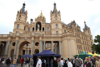 Da brauchen Besucher eine gute Planung, um wirklich alles sehen zu können. Bühnen stehen zum Beispiel am Marstall, am Beutel, auf dem Alten Garten und dem Marktplatz. Das „Regierungszelt“, in dem sich die Landesregierung präsentiert, wird auf dem Alten Garten aufgeschlagen. Rund ums Schloss stellt sich dessen Hausherr, der Landtag, vor. Die Werderstraße lädt mit der Landesmeile zur Reise durch Mecklenburg-Vorpommern ein, außerdem präsentieren sich hier Bundes- und Landespolizei. Ideenland, Sport- und Gesundheitsland, Kinderland und Zukunftsland MV – rund um den Marstall zeigt sich das Bundesland auf kleinem Raum in seiner ganzen Vielfalt. Und Handwerker aus dem Land bauen ihre Stände rund um die Siegessäule auf.