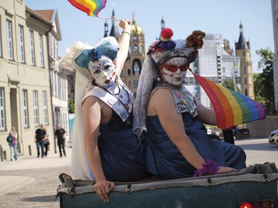 Zum Abschluss zieht am 5. Juli ab 14 Uhr wieder die „Christopher Street Day“-Parade durch die Schweriner Innenstadt, ergänzt durch ein Straßenfest am Pfaffenteich-Südufer. Hier mischen sich politische Reden und Diskussionen mit einem musikalischen Bühnenprogramm. Auch Heterosexuelle sind dazu eingeladen.