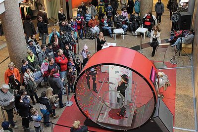 „Auf in die Glücksdusche!“ hieß es Ende Januar wieder im Erdgeschoss des Schlosspark-Centers und hunderte Besucher ließen es sich nicht nehmen, dem Spektakel beizuwohnen. Die Kandidaten, die es schließlich für 30 Sekunden in die Wirbelbox schafften, konnten sich über Gutscheine der Geschäfte Center im Wert von bis zu 100 Euro freuen.