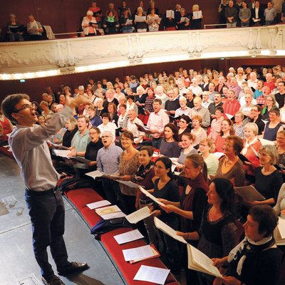 Staatstheaters ins Große Haus ein: Unter dem Motto „Volkslieder zum Mitsingen“ sollen eine gute Stunde lang viele bekannte und auch einige weniger bekannte Lieder mit den Sangesfreudigen gemeinsam gesungen werden. Karten zum Preis von fünf Euro enthalten die Noten und Texte für alle Lieder der Veranstaltung.