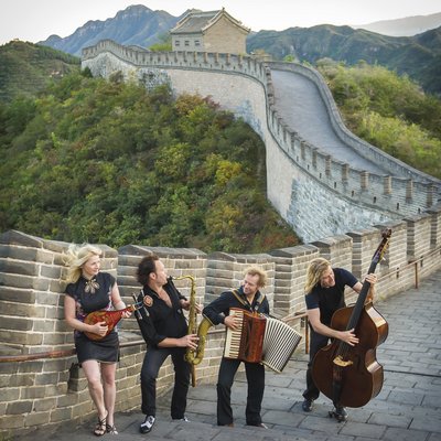 Seit 1996 tourt das illustre Instrumentalquartett, ausgestattet mit Saxophonen, Klarinetten, Akkordeon, Vibrandoneon, Bandoneon, Harfe, Salterio, Kontrabass und Percussion, durch die Länder der Welt. Die Auftrittsorte des Ensembles sind dabei so verschieden wie die Wurzeln ihrer Musik.