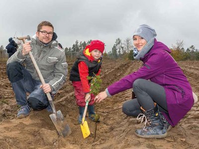 Binnen etwa zwei Stunden wurden in den Malchower Klostertannen, im Herzen der Mecklenburgischen Seenplatte, etwa 1.300 Winterlinden und 700 Vogelkirschbäume in die Erde gesetzt. Forstamtsleiter Bernd Poeppel erläutert: „Die Winterlinde ist Baum des Jahres 2016 und bestens für diesen lehmhaltigen Sandboden geeignet. Die Vogelkirsche besitzt ein sehr wertvolles Holz und ist während der Blütezeit eine Oase für Insekten.“