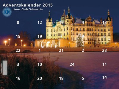 Hinter den 24 Türchen des neuen Lions Kalenders verbergen sich mehr als 260 Sachpreise und Veranstaltungsgutscheine im Gesamtwert von zirka 11.000 Euro, darunter zum Beispiel eine Urlaubswoche in der Villa Seeblick auf der Insel Rügen, eine zweitägige Fahrt nach Berlin zum Deutschen Bundestag, ein Hotelgutschein für zwei Personen und eine Übernachtung im Baumhaus des Schweriner Zoos.