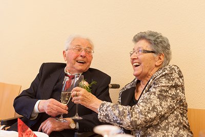 Ein besonderes Jubiläum beging man Ende März im Seniorenhaus „Am Mühlenberg“: Hildegard und Alfred Dittrich stießen hier auf ihren 65. Hochzeitstag an. Gemeinsam hießen sie Kinder, Enkel und Urenkel willkommen und ließen in trauter Runde die vergangenen 65 Jahre Revue passieren. Die Eheleute, gebürtig aus Sachsen, hatten sich 1947 kennengelernt und sich bereits nach einem Jahr das Ja-Wort gegeben. Gegenseitiger Respekt verbunden mit Liebe zueinander und zu den drei Kindern – so lautet das einfache Rezept für diese Eiserne Partnerschaft.