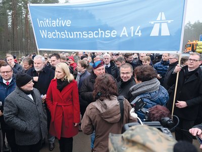 Stück für Stück nach Süden: Der nächste Abschnitt der Autobahn A?14 ist fertig. Er erstreckt sich von der Anschlussstelle Grabow bis zur Anschlussstelle Groß Warnow in Brandenburg, ist rund elf Kilometer lang und durchschnittlich 28 Meter breit.