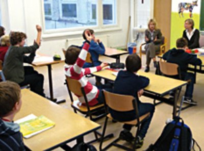 Unterricht einmal anders. Die 7a der Niels-Stensen-Schule in Schwerin hatte am Freitag Besuch aus der Politik. Die Klasse, die im Rahmen des Geschichtswettbewerbs des Bundespräsidenten das Projekt „Armut und raus bist du“ bearbeitet, hatte sich Sozialministerin Manuela Schwesig eingeladen.