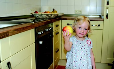 Mittlerweile wird der kleine Küchenraum in der Kita als Teeküche genutzt. Hier wird außerdem das Mittagessen ausgereicht und die Obstpause vorbereitet. Waschmaschine, Wäschetrockner und Geschirrspüler versehen täglich ihren Dienst.