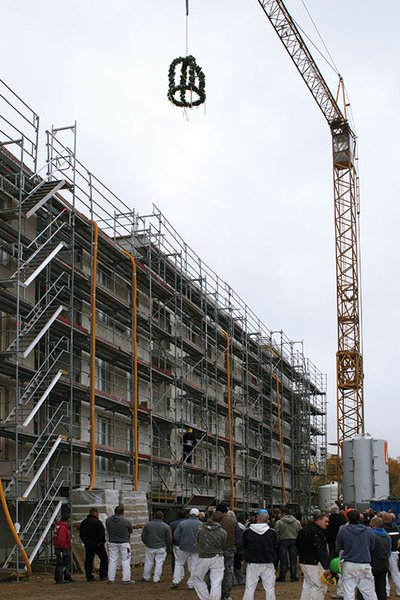 das den Gästen des Richtfestes: „Besser kann man in Schwerin kaum wohnen.”