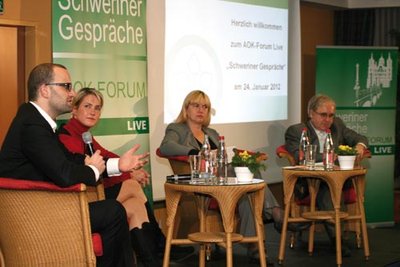 120 Gäste aus Politik und der Gesundheitsbranche folgten der Frage „Wie kann die gesetzliche Krankenversicherung (GKV) zukunftsfest finanziert werden?“. Prof. Dr. Jürgen Wasem vom Stiftungslehrstuhl für Medizinmanagement an der Universität Duisburg-Essen, Arbeits- und Gesundheitsministerin von Mecklenburg-Vorpommern Manuela Schwesig (SPD) und der gesundheitspolitische Sprecher der CDU/CSU-Bundestagsfraktion Jens Spahn suchten Antworten.